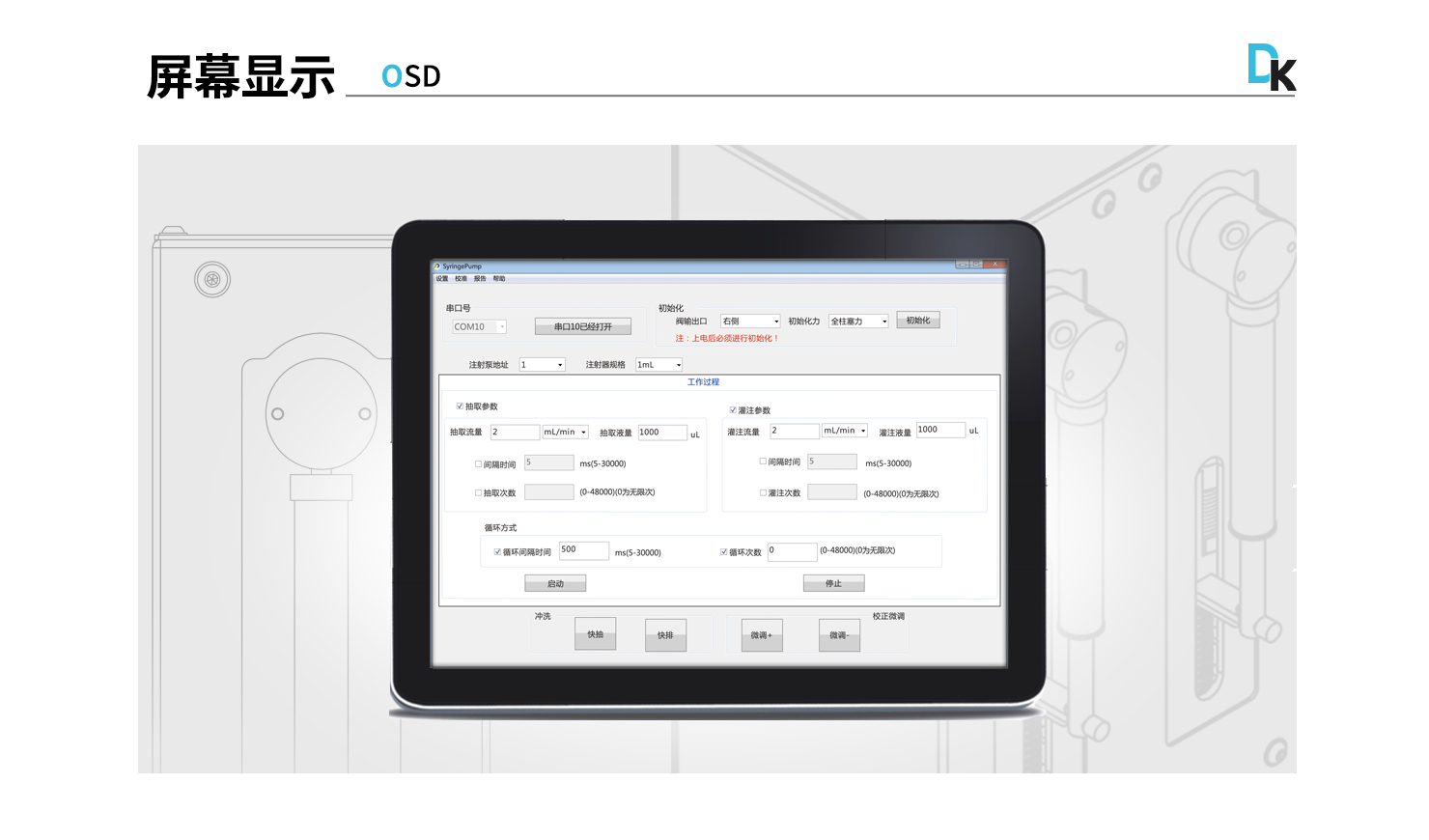 活塞驅(qū)動(dòng):步進(jìn)電機(jī)驅(qū)動(dòng)絲桿,光電編碼器檢測(cè)失步以及回零