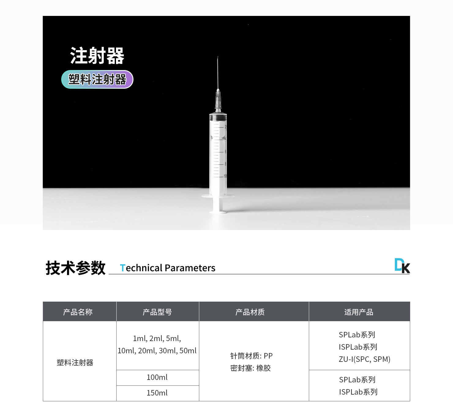 注射器型號(hào):1mL、2mL、5mL、10mL、20mL、30mL、50mL、100mL、150mL