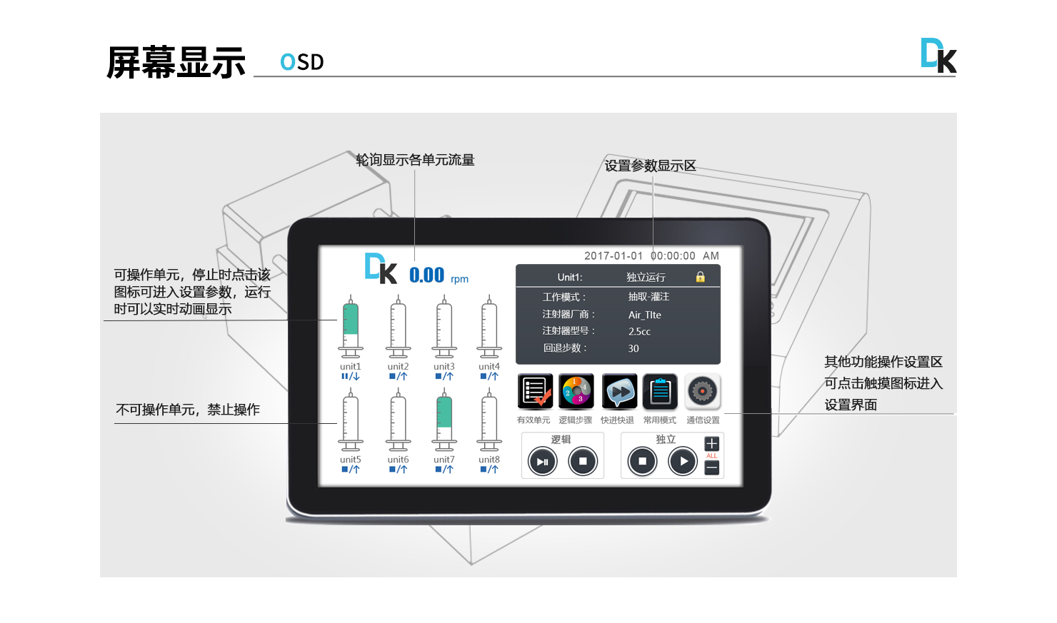 線速度范圍:1μm/min-132mm/min(流量=線速度*注射器內(nèi)截面積)